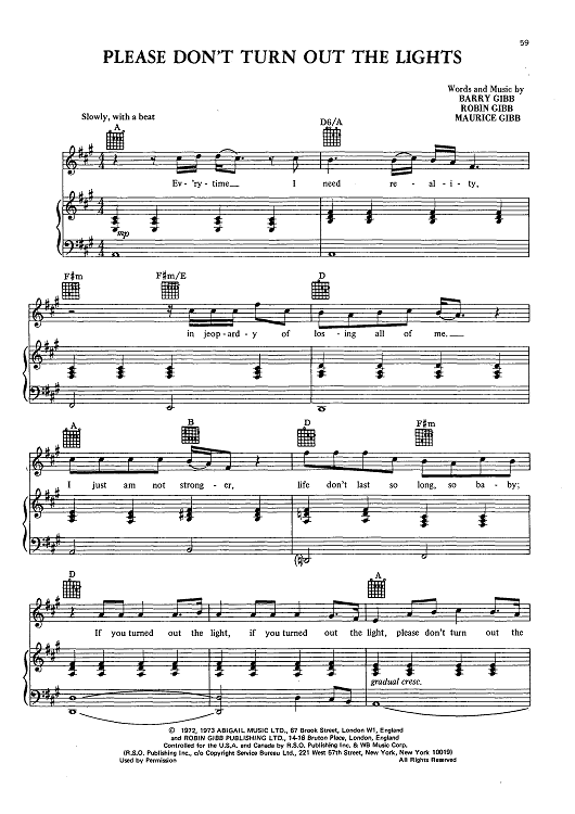 Digital Sheet Music for Please Don't Turn Out The Lights by Bee Gees, Maurice Gibb, Barry Gibb, Robin Gibb scored for Piano/Vocal/Chords; id:429842