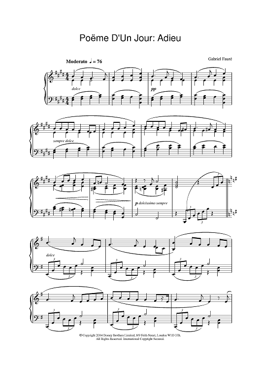 Digital Sheet Music for Poëme D'Un Jour: Adieu by Gabriel Fauré scored for Piano; id:382778