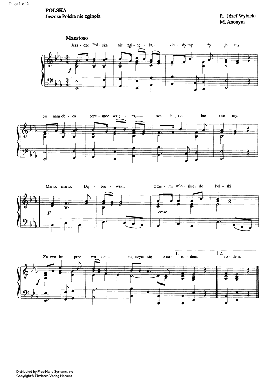 Digital Sheet Music for Poland - Jeszcze Polska nie zginela by Unknown Writer, Roberto Cittadini scored for Piano/Vocal; id:328986