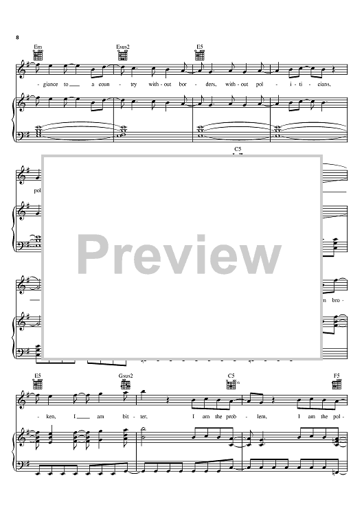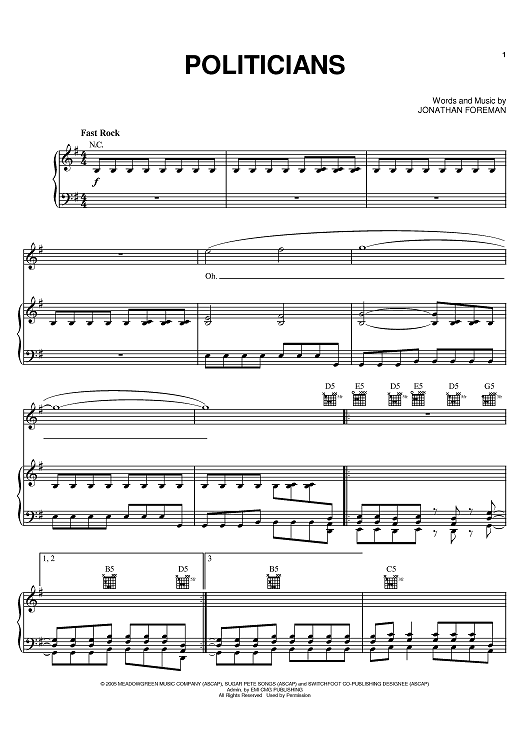 Digital Sheet Music for Politicians by Jonathan Mark Foreman, Switchfoot scored for Piano/Vocal/Chords; id:387354