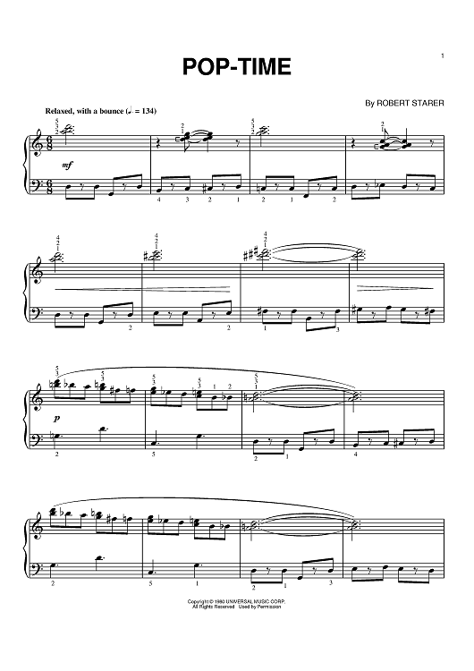 Digital Sheet Music for Pop-Time by Robert Starer scored for Piano; id:391832
