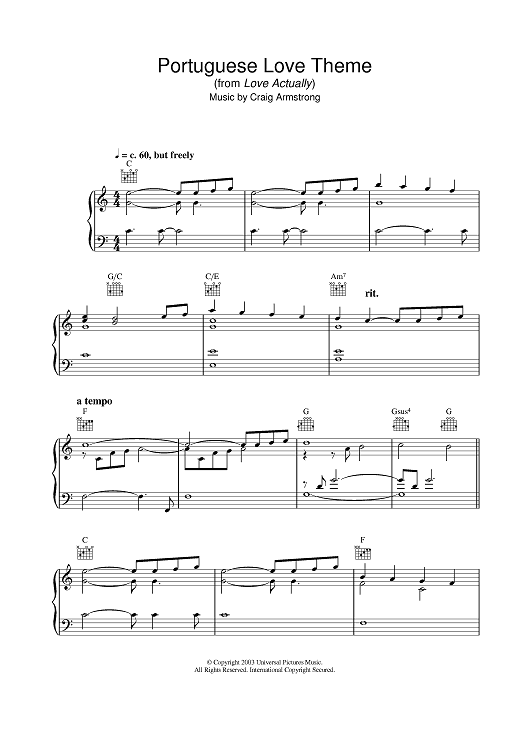 Digital Sheet Music for Portuguese Love Theme by Craig Armstrong scored for Piano; id:378306