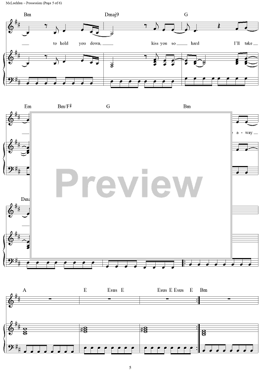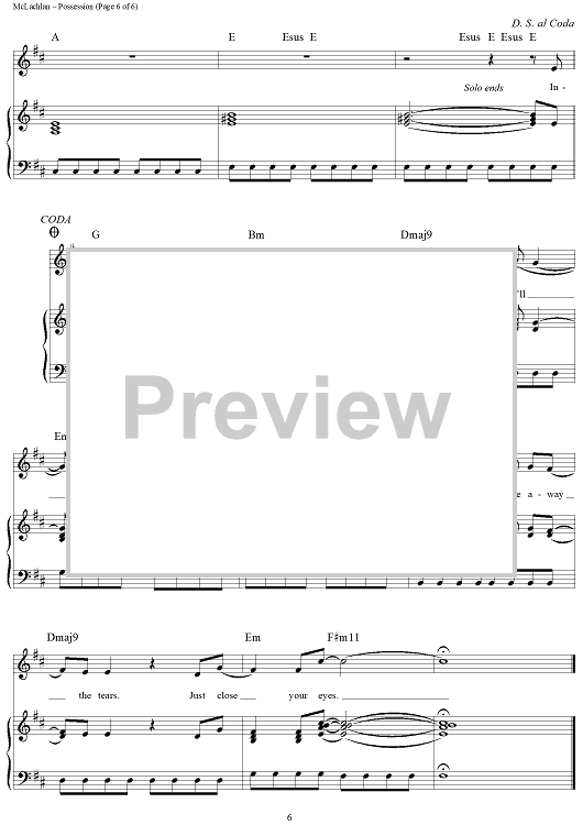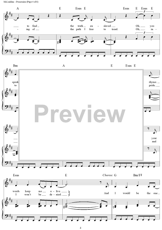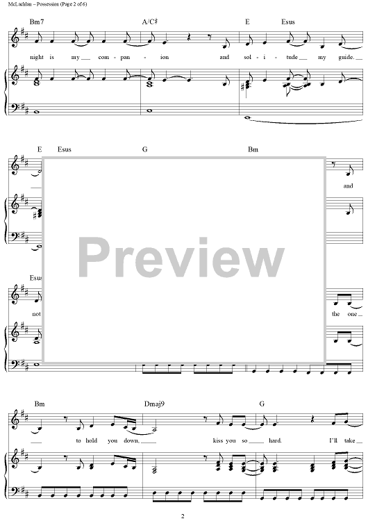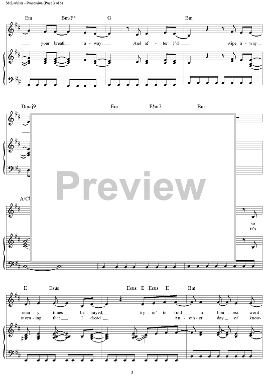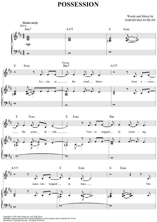 Digital Sheet Music for Possession by Sarah McLachlan scored for Piano/Vocal/Chords; id:365441
