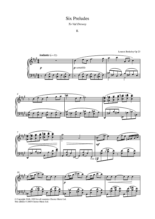 "Prelude No. 2 (from Six Preludes)" Sheet Music by Lennox Berkeley