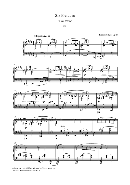 "Prelude No. 4 (from Six Preludes)" Sheet Music by Lennox Berkeley