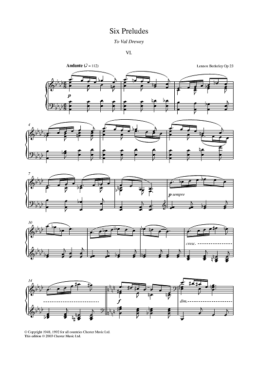 "Prelude No. 6 (from Six Preludes)" Sheet Music by Lennox Berkeley