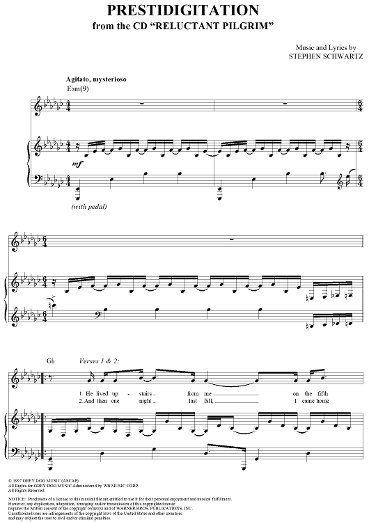 Digital Sheet Music for Prestidigitation by Stephen Schwartz scored for Piano/Vocal/Chords; id:288172
