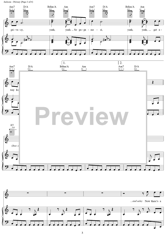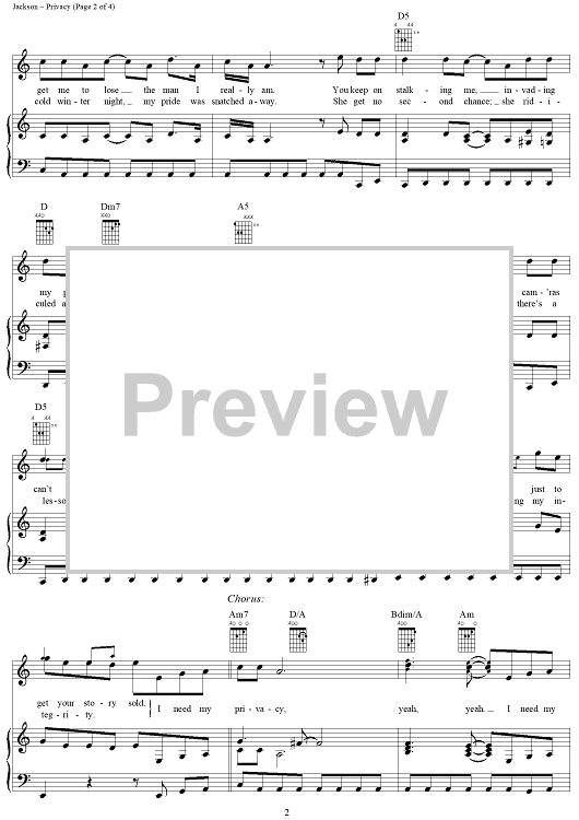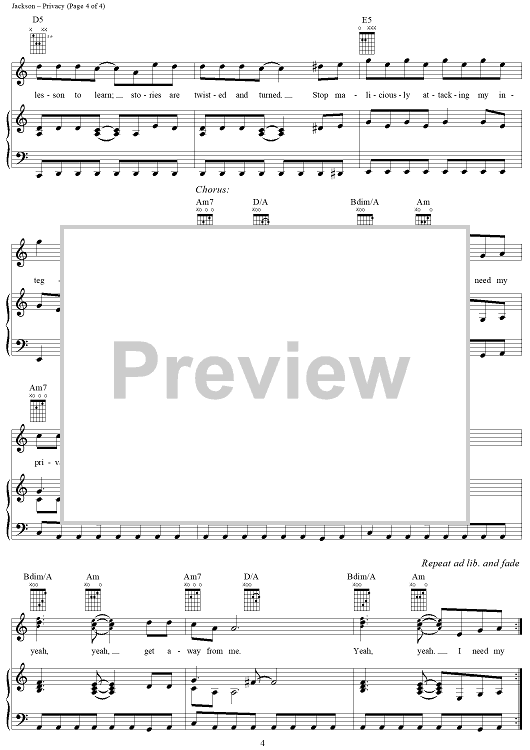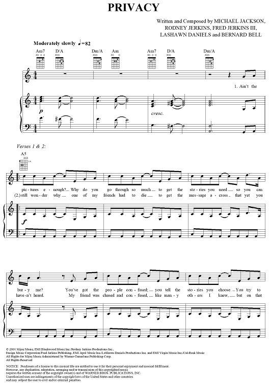 Digital Sheet Music for Privacy by Michael Jackson, Rodney Jerkins, LaShawn Daniels, Fred Jerkins III, Bernard Bell scored for Piano/Vocal/Chords; id:288928