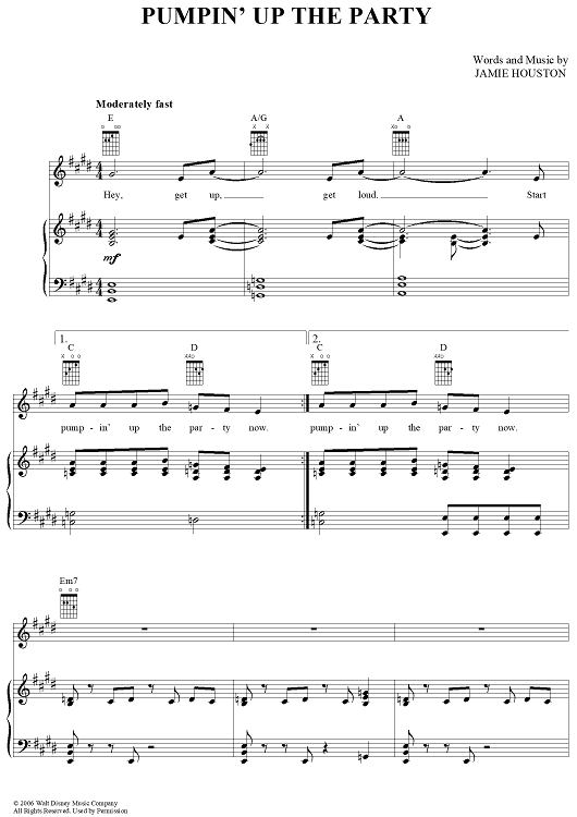 Digital Sheet Music for Pumpin' Up the Party by Jamie Houston, Hannah Montana scored for Piano/Vocal/Chords; id:366981