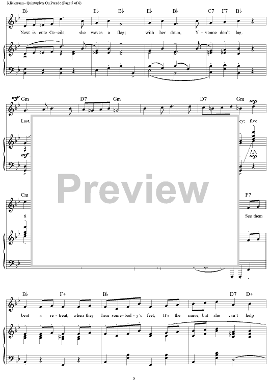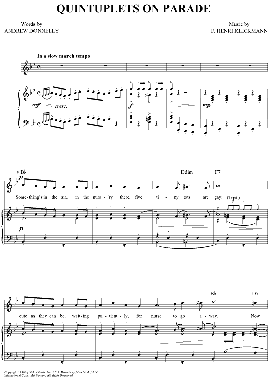Digital Sheet Music for Quintuplets On Parade by F. Henri Klickmann, Andrew Donnelly scored for Piano/Vocal; id:419221