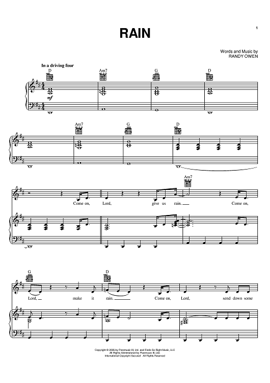 Digital Sheet Music for Rain by Randy Owen, Alabama scored for Piano/Vocal/Chords; id:396054