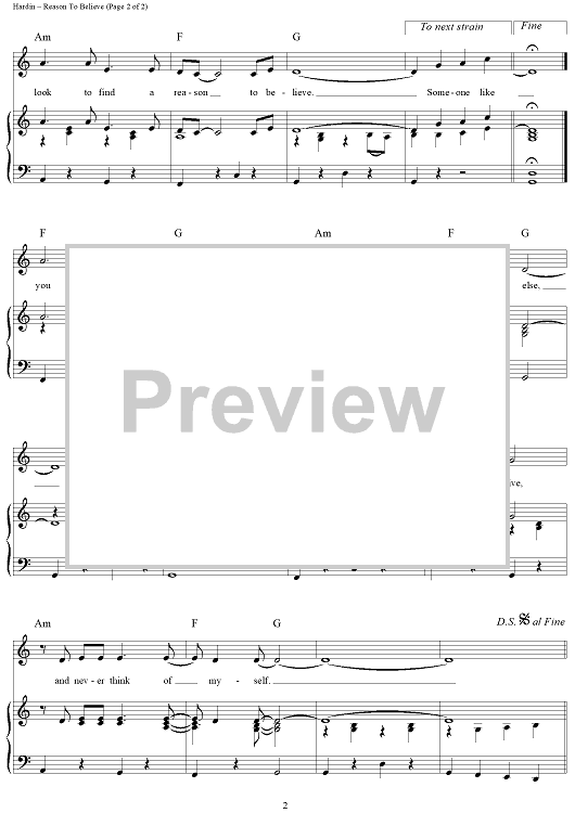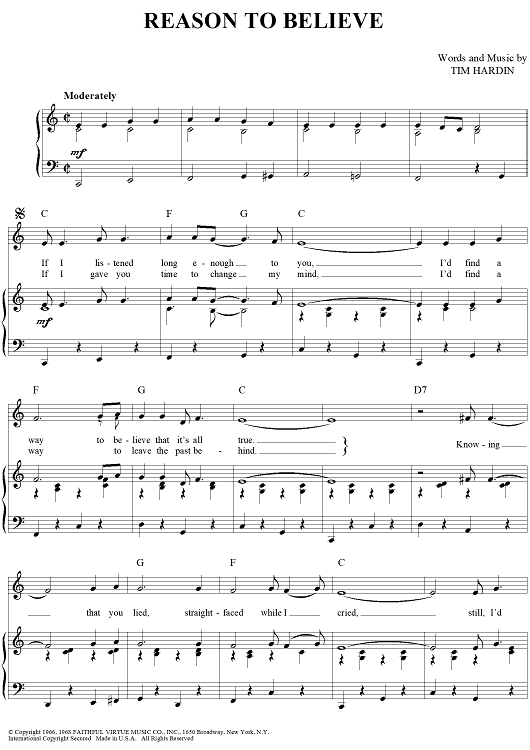 Digital Sheet Music for Reason To Believe by Rod Stewart, Tim Hardin scored for Piano/Vocal/Chords; id:365699