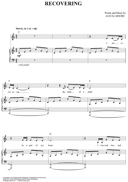 Digital Sheet Music for Recovering by Celine Dion, P!nk scored for Piano/Vocal/Chords; id:461306
