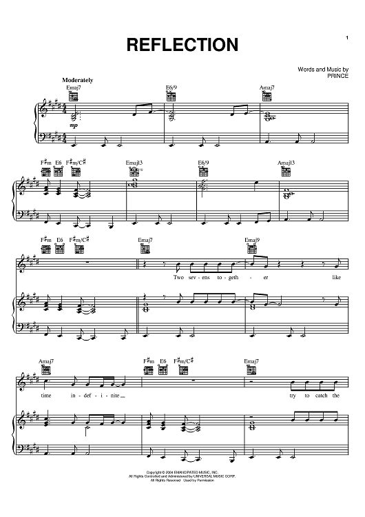Digital Sheet Music for Reflection by Prince scored for Piano/Vocal/Chords; id:389717