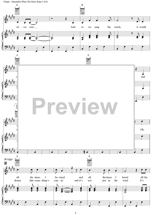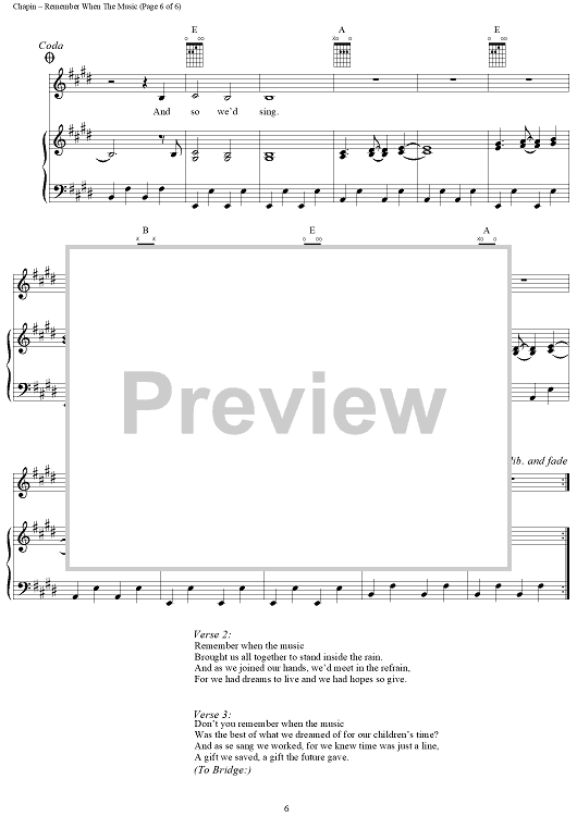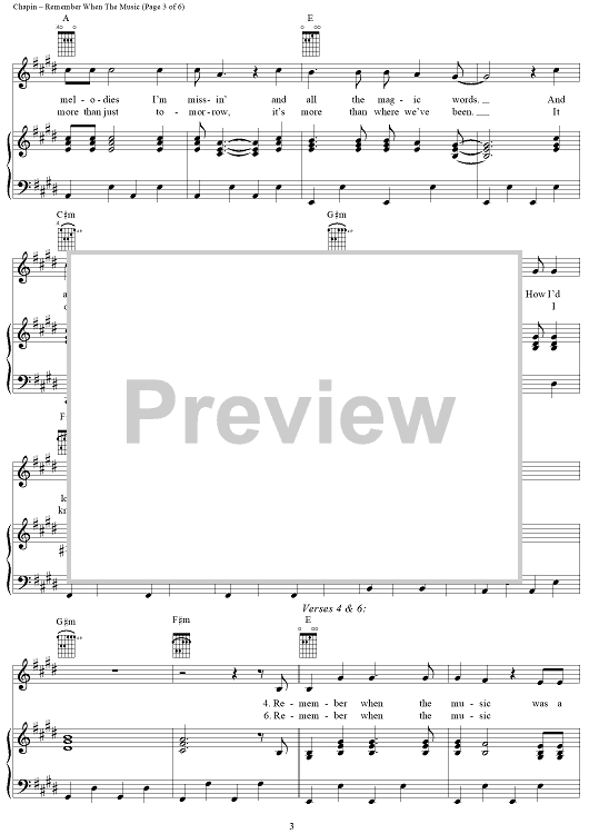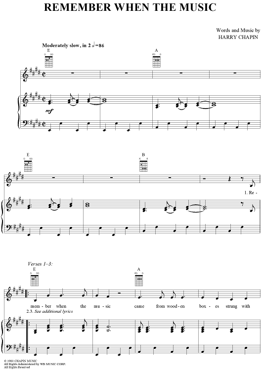 Digital Sheet Music for Remember When The Music by Harry Chapin scored for Piano/Vocal/Chords; id:417436