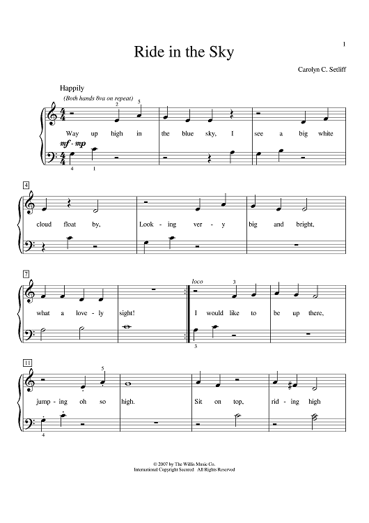 Digital Sheet Music for Ride In The Sky by Carolyn C. Setliff scored for Piano; id:395293