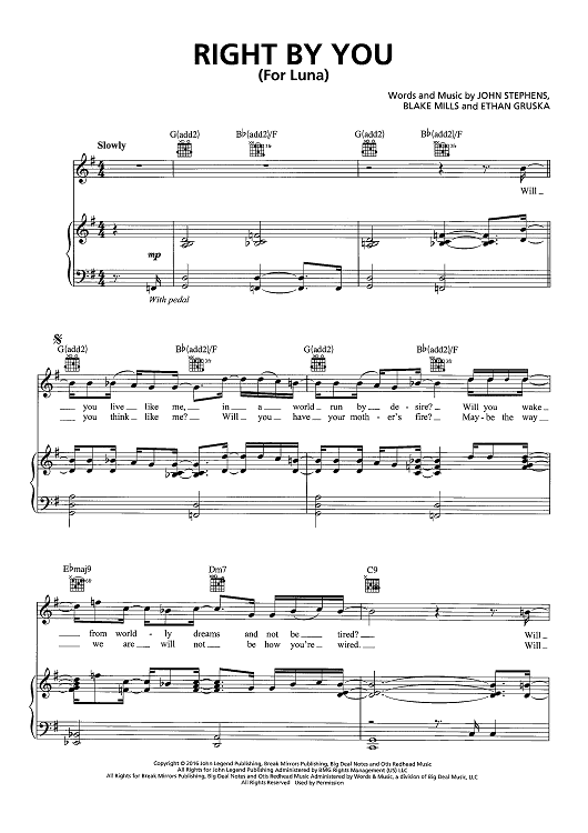 Digital Sheet Music for Right By You by John Legend, Blake Mills, Ethan Gruska scored for Piano/Vocal/Chords; id:464958