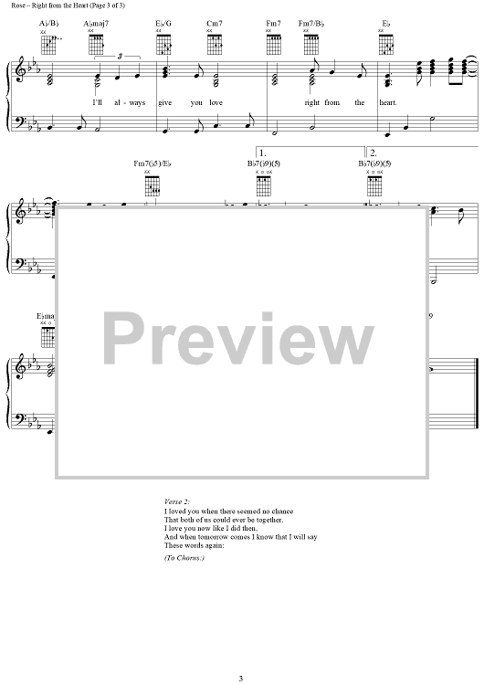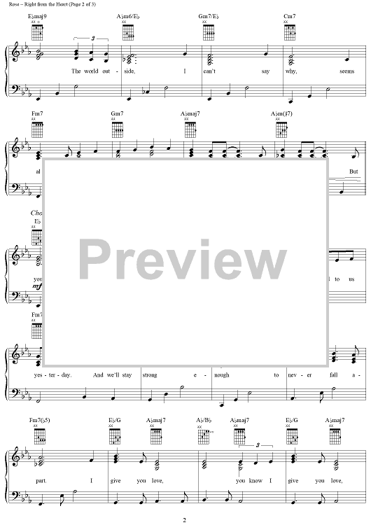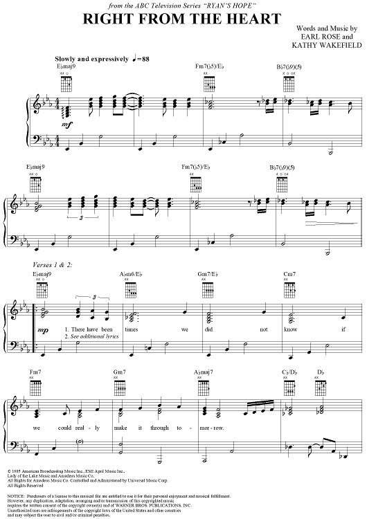 Digital Sheet Music for Right from the Heart by Earl Rose, Kathy Wakefield scored for Piano/Vocal/Chords; id:288966