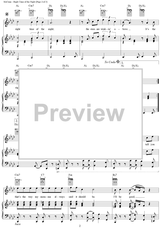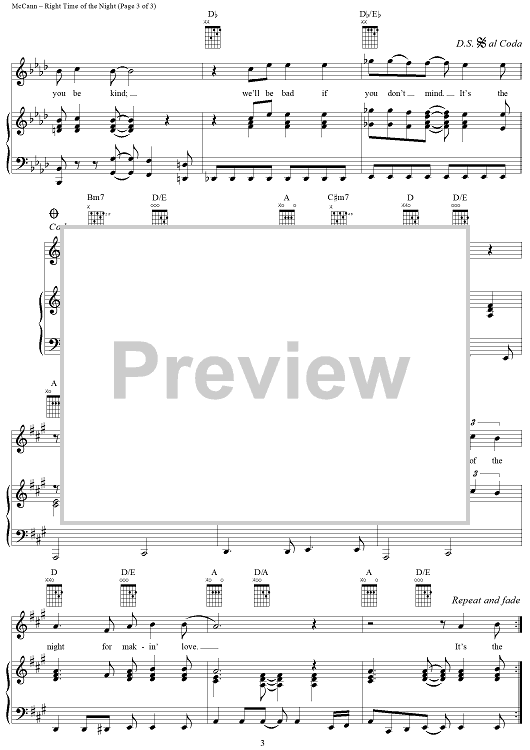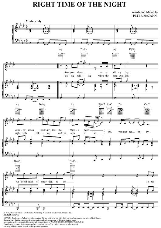 Digital Sheet Music for Right Time of the Night by Peter McCann, Jennifer Warnes scored for Piano/Vocal/Chords; id:288256