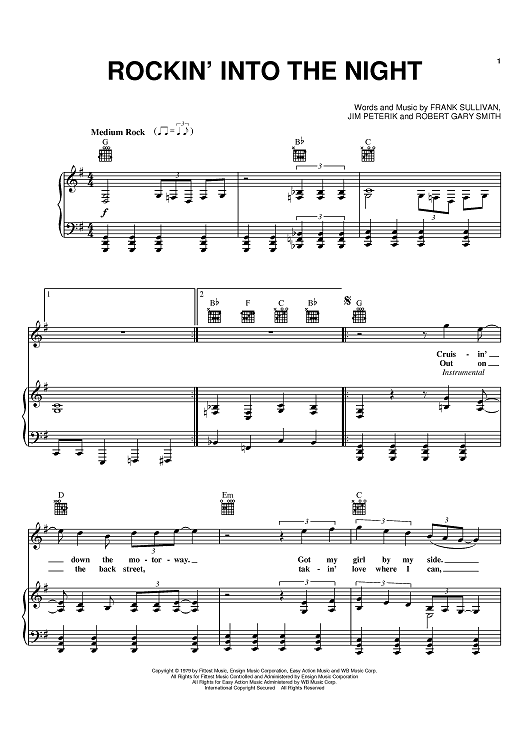 Digital Sheet Music for Rockin' Into The Night by Frank Sullivan, Jim Peterik, 38 Special, Robert Gary Smith scored for Piano/Vocal/Chords; id:395452