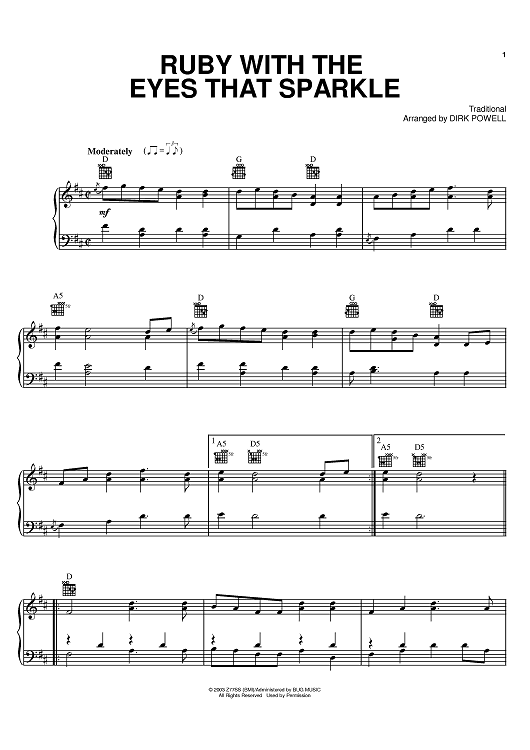 Digital Sheet Music for Ruby With The Eyes That Sparkle by Stuart Duncan, Dirk Powell scored for Piano/Vocal/Chords; id:374510