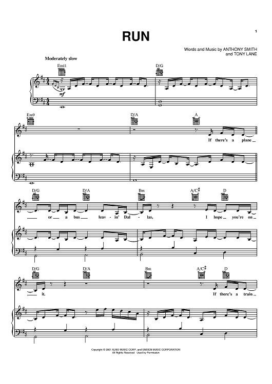 Digital Sheet Music for Run by George Strait, Anthony Smith, Tony Lane scored for Piano/Vocal/Chords; id:368849