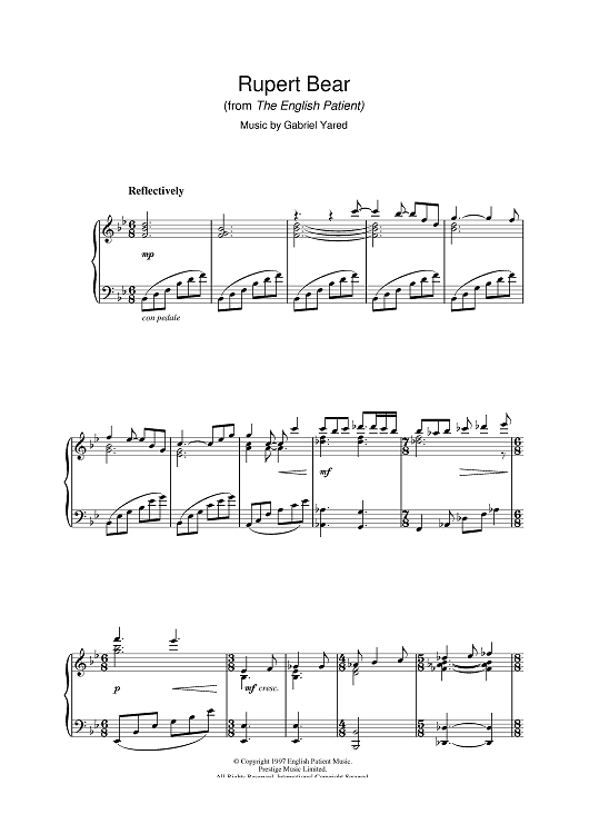 Digital Sheet Music for Rupert Bear by Gabriel Yared scored for Piano; id:398141