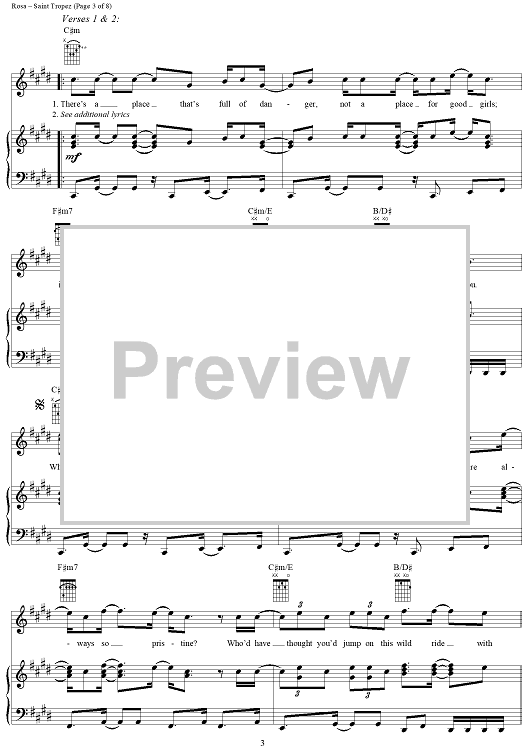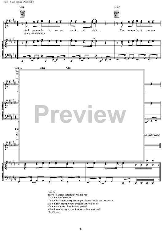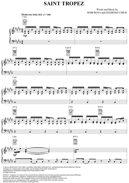 Digital Sheet Music for Saint Tropez by Desmond Child, Robi Rosa, Ricky Martin scored for Piano/Vocal/Chords; id:288274