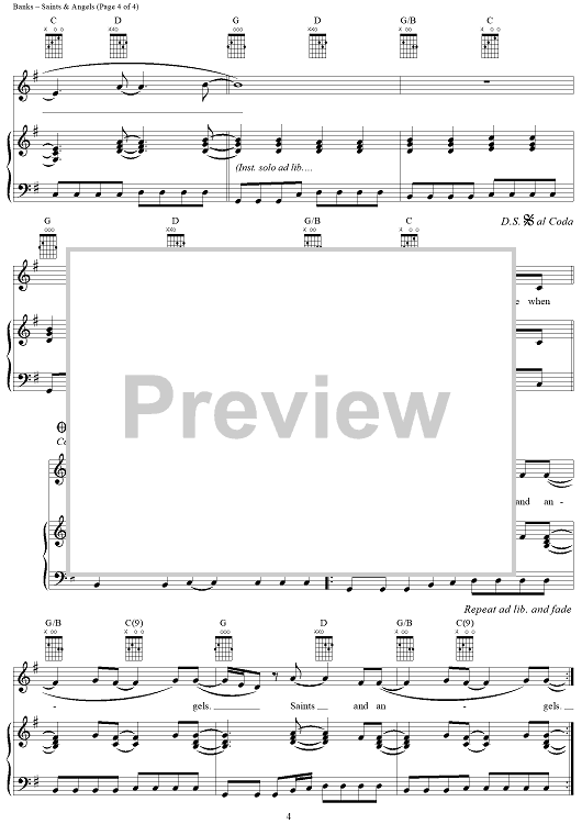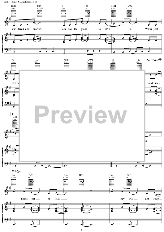 Digital Sheet Music for Saints & Angels by Sara Evans, Victoria Banks scored for Piano/Vocal/Chords; id:296984