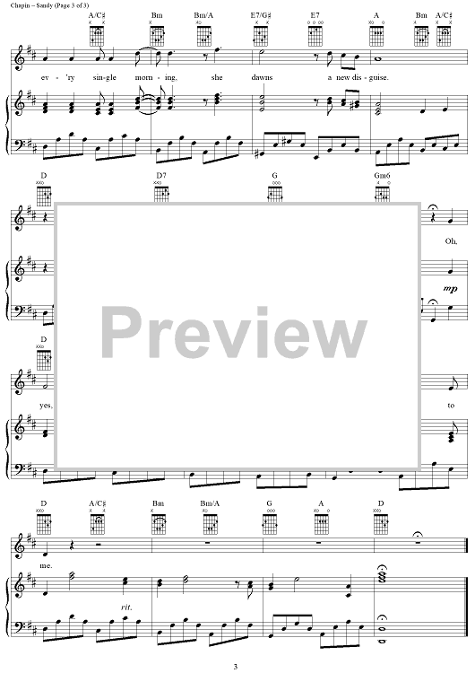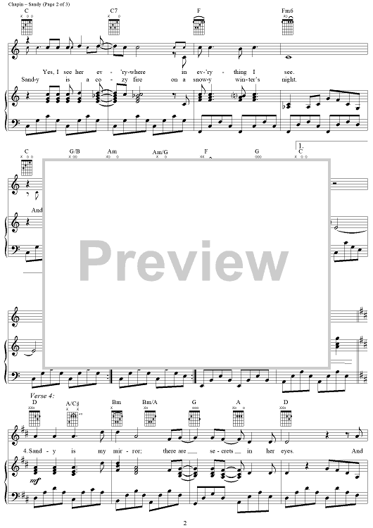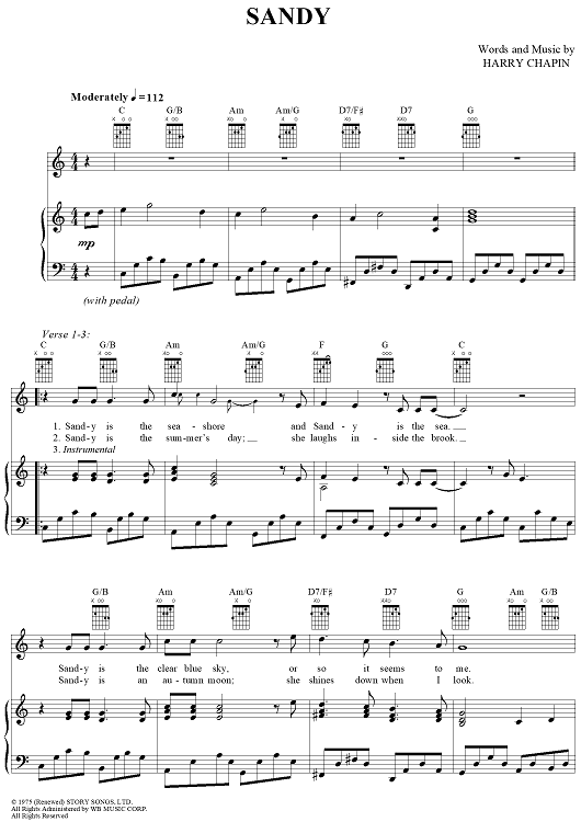 Digital Sheet Music for Sandy by Harry Chapin scored for Piano/Vocal/Chords; id:417437