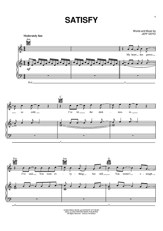 Digital Sheet Music for Satisfy by Jeff Deyo scored for Piano/Vocal/Chords; id:373770
