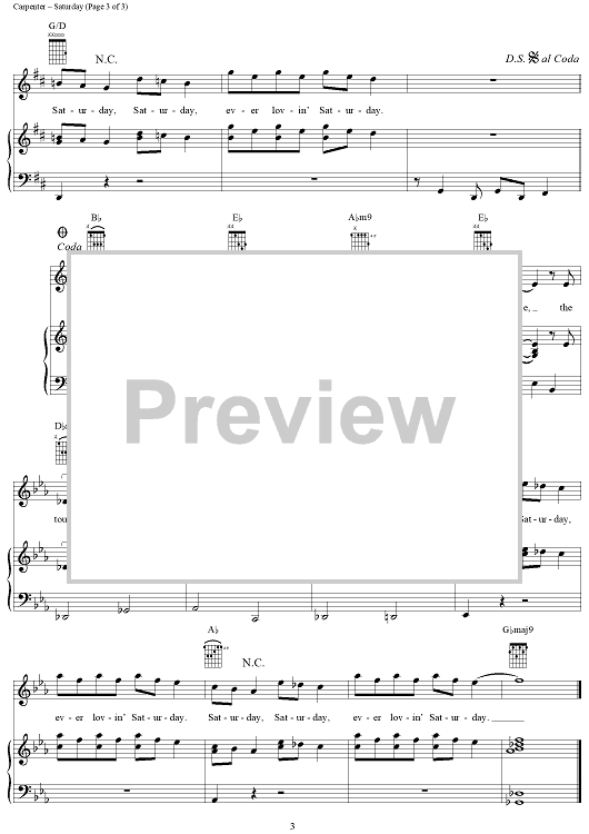 Digital Sheet Music for Saturday by The Carpenters, Richard Carpenter, John Bettis scored for Piano/Vocal/Chords; id:367264