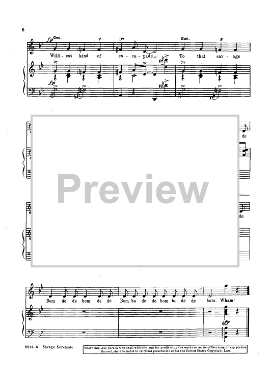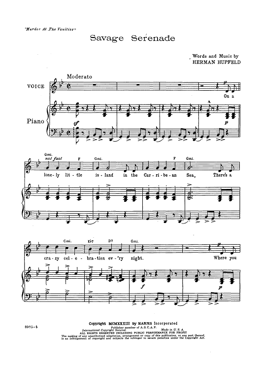 Digital Sheet Music for Savage Serenade by Herman Hupfeld scored for Piano/Vocal/Chords; id:424231