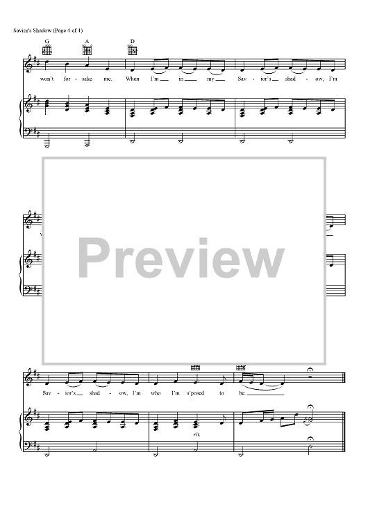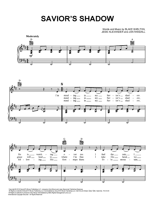 Digital Sheet Music for Savior's Shadow by Blake Shelton, Jon Randall, Jessi Alexander scored for Piano/Vocal/Chords; id:458962