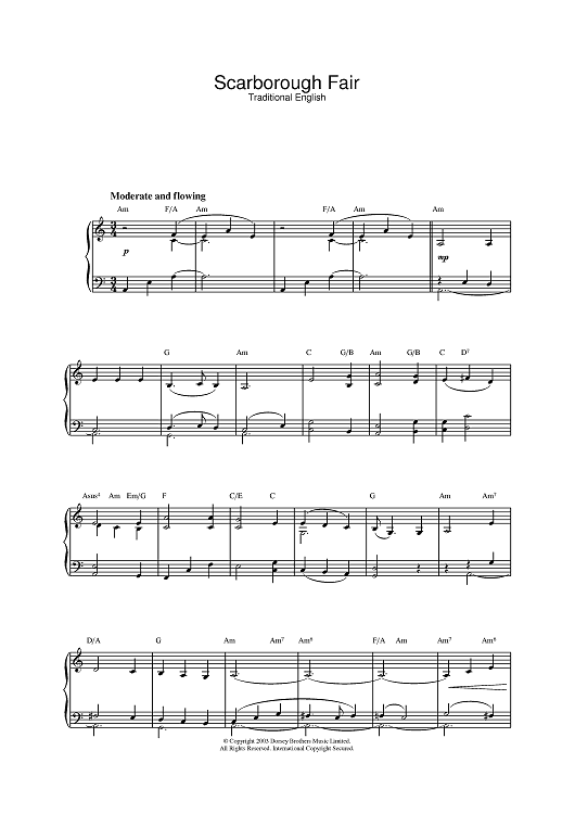 Digital Sheet Music for Scarborough Fair by scored for Piano; id:375844