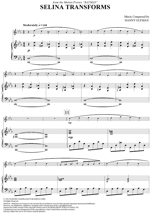 Digital Sheet Music for Selina Transforms - from the movie: Batman Returns by Danny Elfman scored for Piano Accompaniment; id:270359