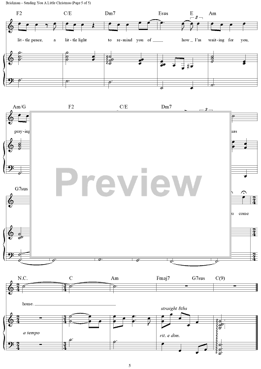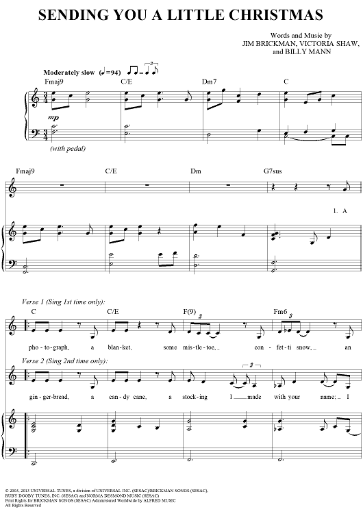 Digital Sheet Music for Sending You A Little Christmas by Jim Brickman, Victoria Shaw, Billy Mann scored for Piano/Vocal/Chords; id:437776