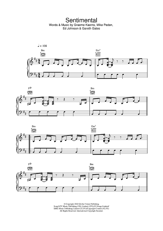 Digital Sheet Music for Sentimental by Gareth Gates, Henry Johnson, Graham Kearns, Michael Peden, Edward Johnson scored for Piano/Vocal/Chords; id:377734
