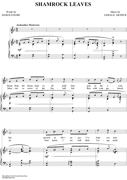 Digital Sheet Music for Shamrock Leaves by Gerald Arthur, Harold Robe scored for Piano/Vocal; id:418631