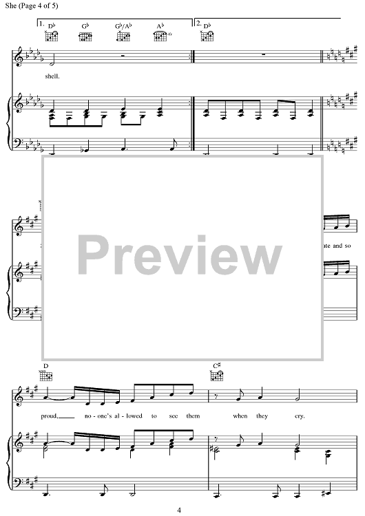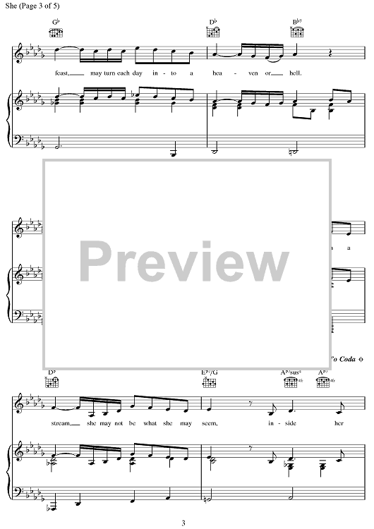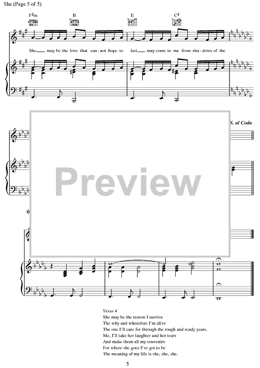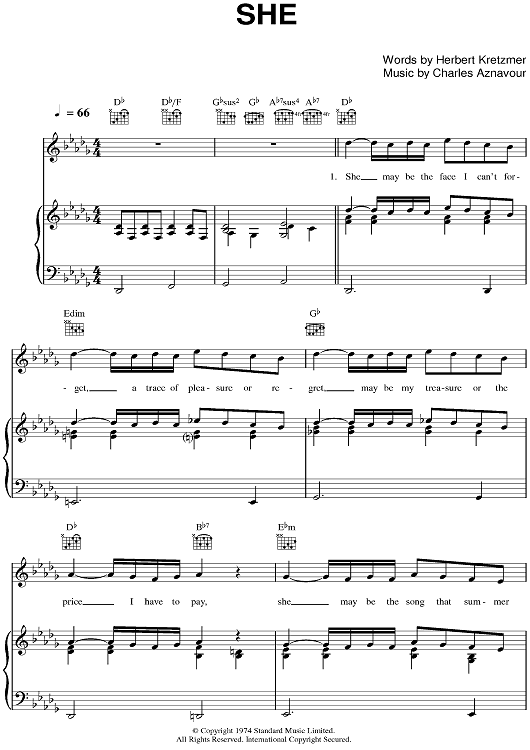 "She" sheet music. Theme from the BBC series 'Seven Faces of Woman' was originally witten in French and titlesd "Tous les visages de l'amour" wth different lyrics.