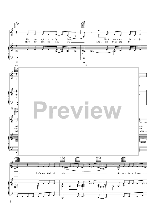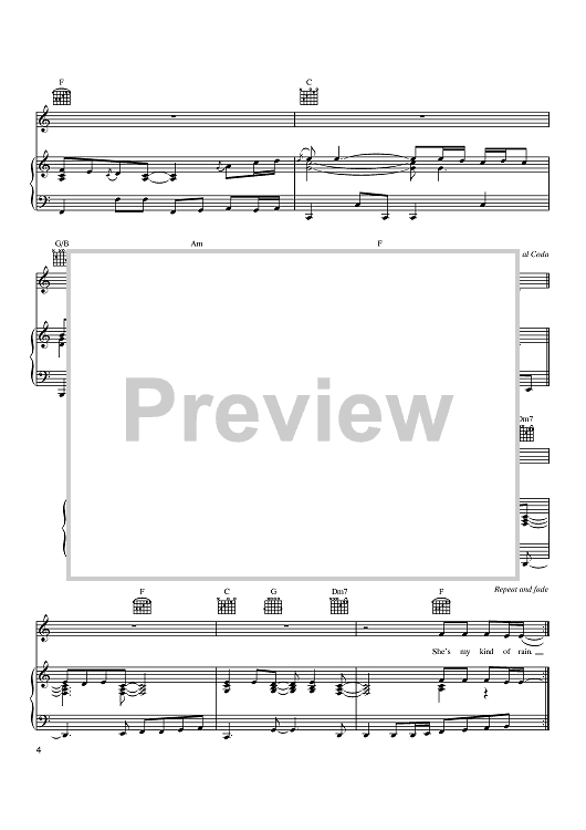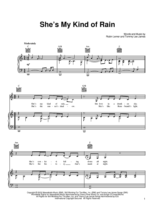 Digital Sheet Music for She's My Kind Of Rain by Tim McGraw, Robin Lerner, Tommy Lee James scored for Piano/Vocal/Chords; id:371496