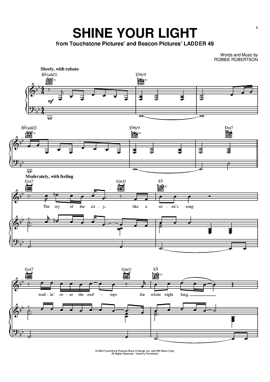 Digital Sheet Music for Shine Your Light by Robbie Robertson scored for Piano/Vocal/Chords; id:381147