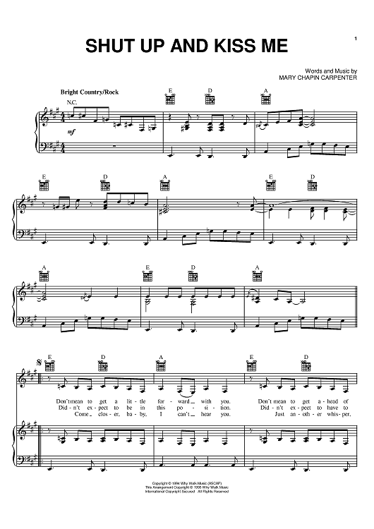 Digital Sheet Music for Shut Up And Kiss Me by Mary Chapin Carpenter scored for Piano/Vocal/Chords; id:395455