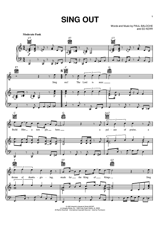 Digital Sheet Music for Sing Out by Paul Baloche, Edmund Kerr scored for Piano/Vocal/Chords; id:374088