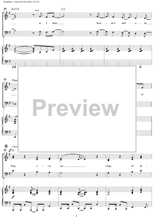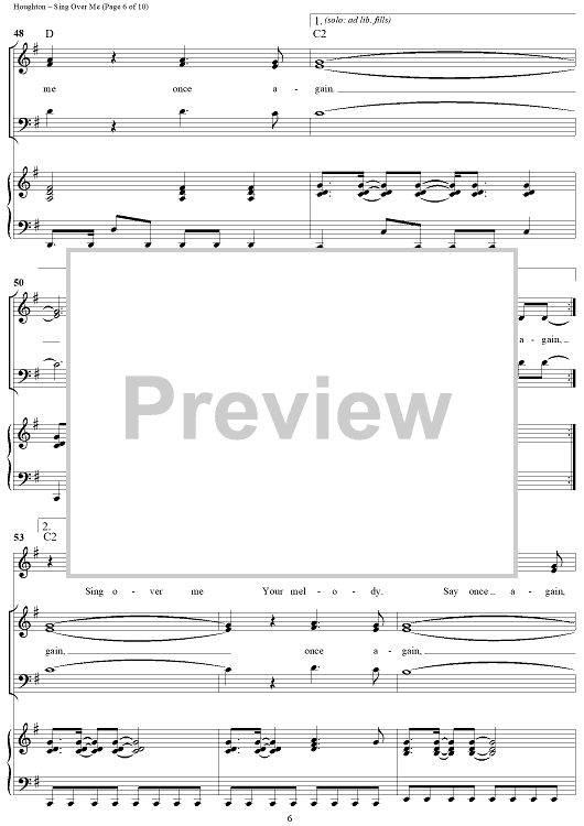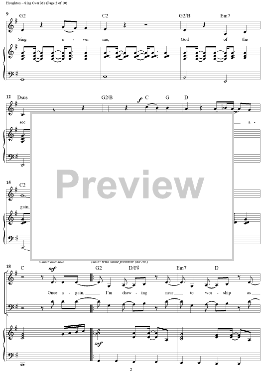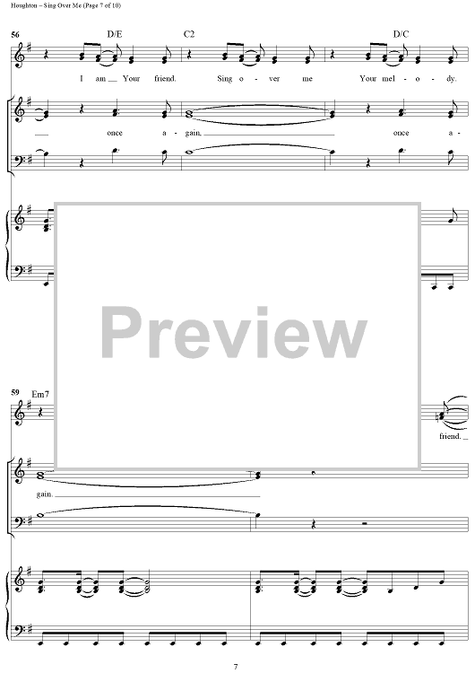 Digital Sheet Music for Sing Over Me by Israel Houghton, Cindy Cruse-Ratcliff, Meleasa Houghton scored for Piano/Vocal/Chords; id:314548
