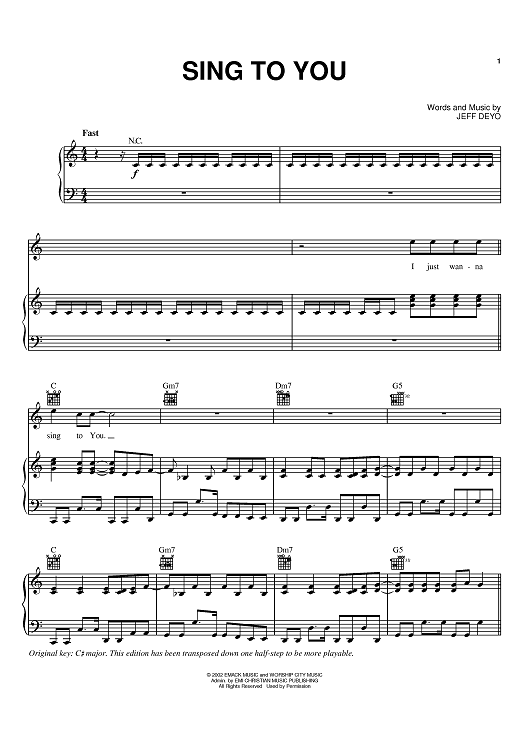 Digital Sheet Music for Sing To You by Jeff Deyo scored for Piano/Vocal/Chords; id:373773