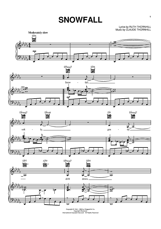 Digital Sheet Music for Snowfall by Tony Bennett, Claude Thornhill, Ruth Thornhill scored for Piano/Vocal/Chords; id:368121