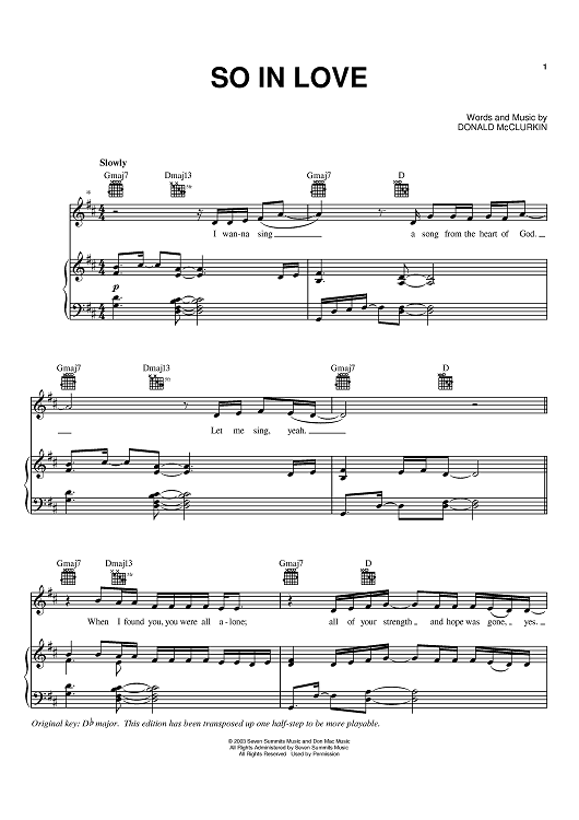 Digital Sheet Music for So In Love by Donnie McClurkin scored for Piano/Vocal/Chords; id:372974