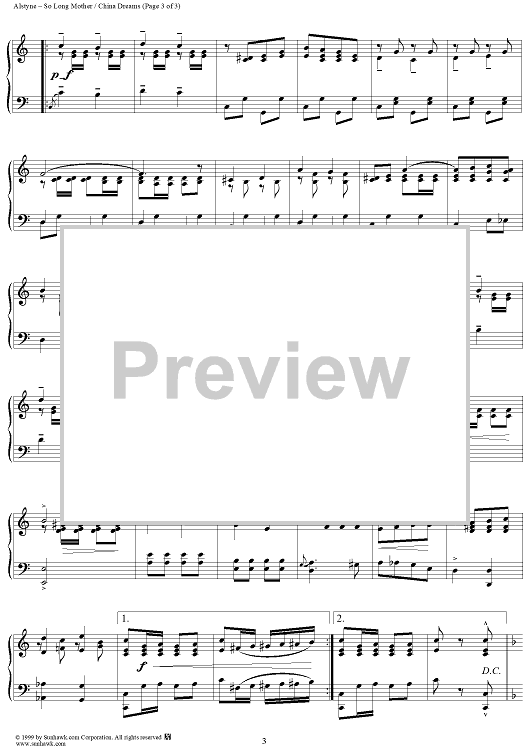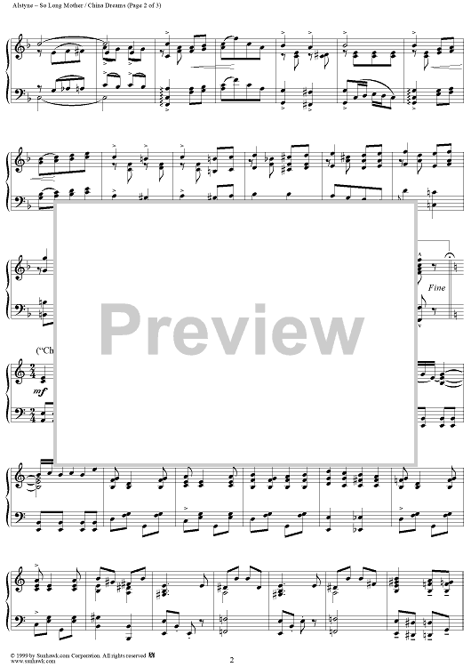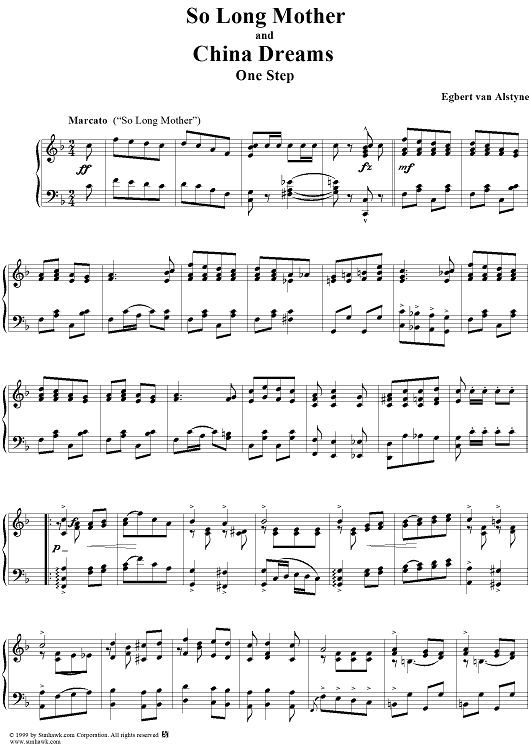 Digital Sheet Music for So Long Mother / China Dreams medley (One Step) by Egbert Van Alstyne scored for Piano/Vocal; id:277752