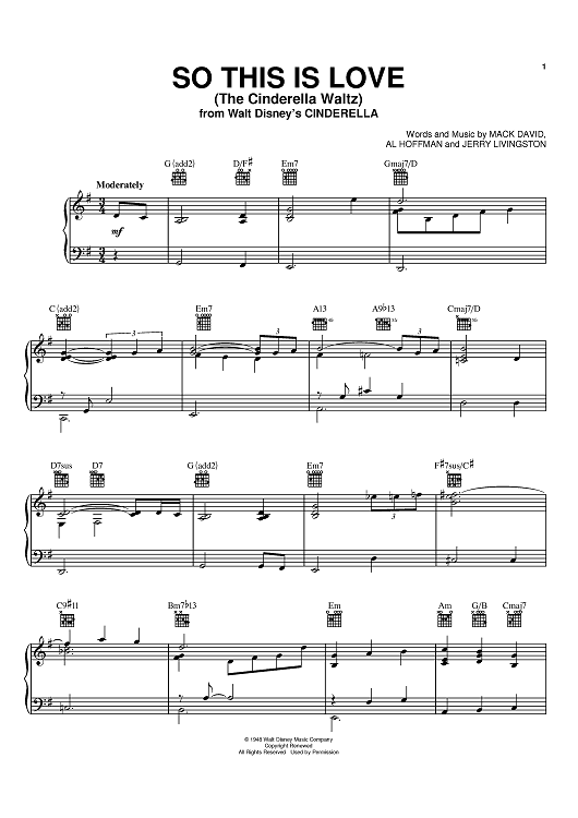 Digital Sheet Music for So This Is Love (The Cinderella Waltz) by Jerry Livingston, Mack David, Al Hoffman, James Ingram scored for Piano/Vocal/Chords; id:368774